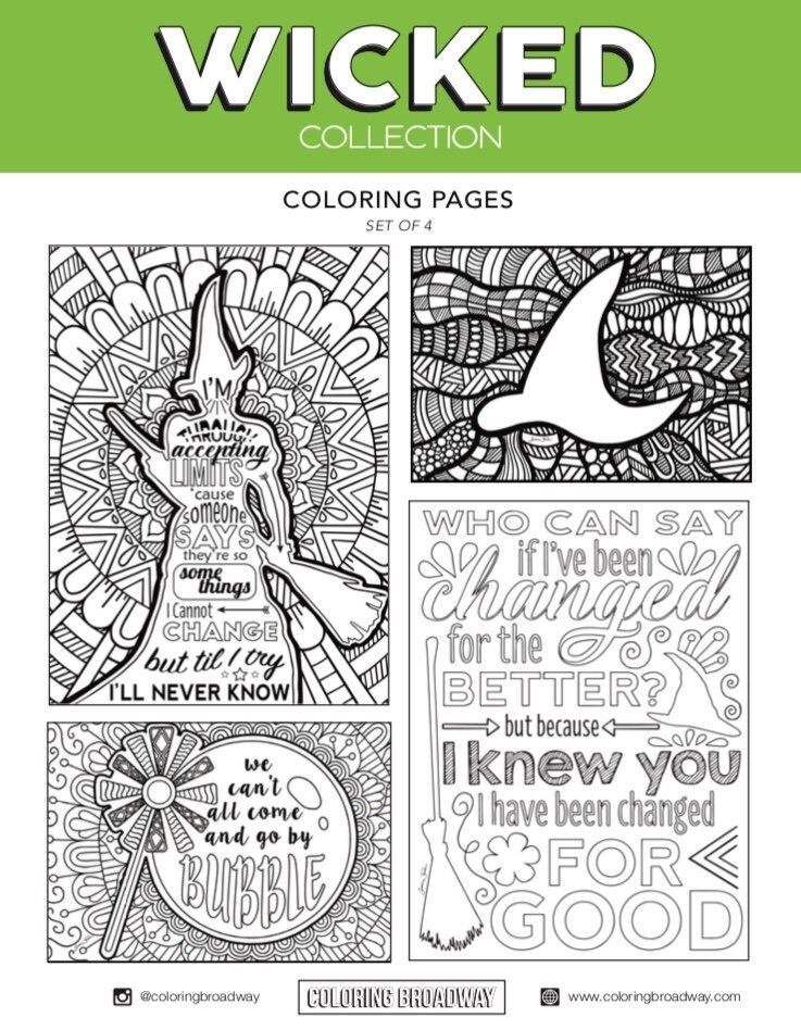 Wicked Coloring Bundle Defying Gravity Changed For Good Etsy