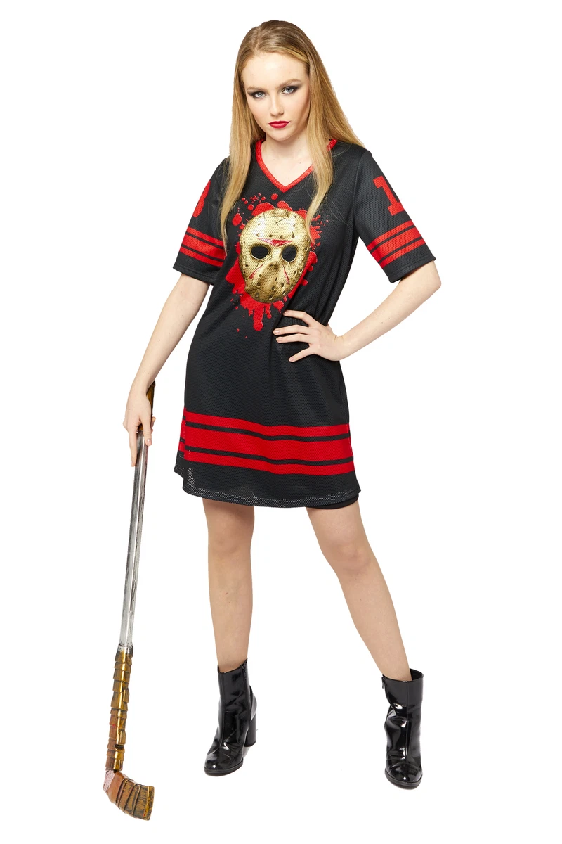 Adult Jason Voorhees Halloween Fancy Dress Costume Ladies Womens Friday The 13th Ebay